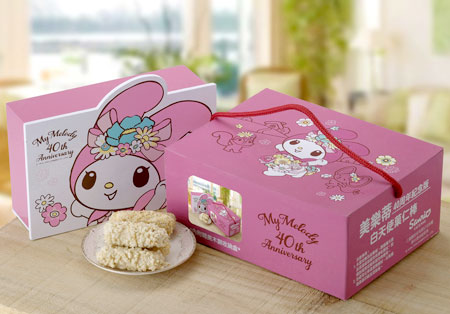 三麗鷗家族人氣明星第一名外層包滿烘烤過的菓仁與香醇的白巧克力, 包覆著酥脆糙米捲, 每一口都是幸福的美味。美樂蒂全新40週年紀念版,搭配美樂蒂立體造型木製掀蓋式收納盒,可作收藏盒使用,質感極佳。